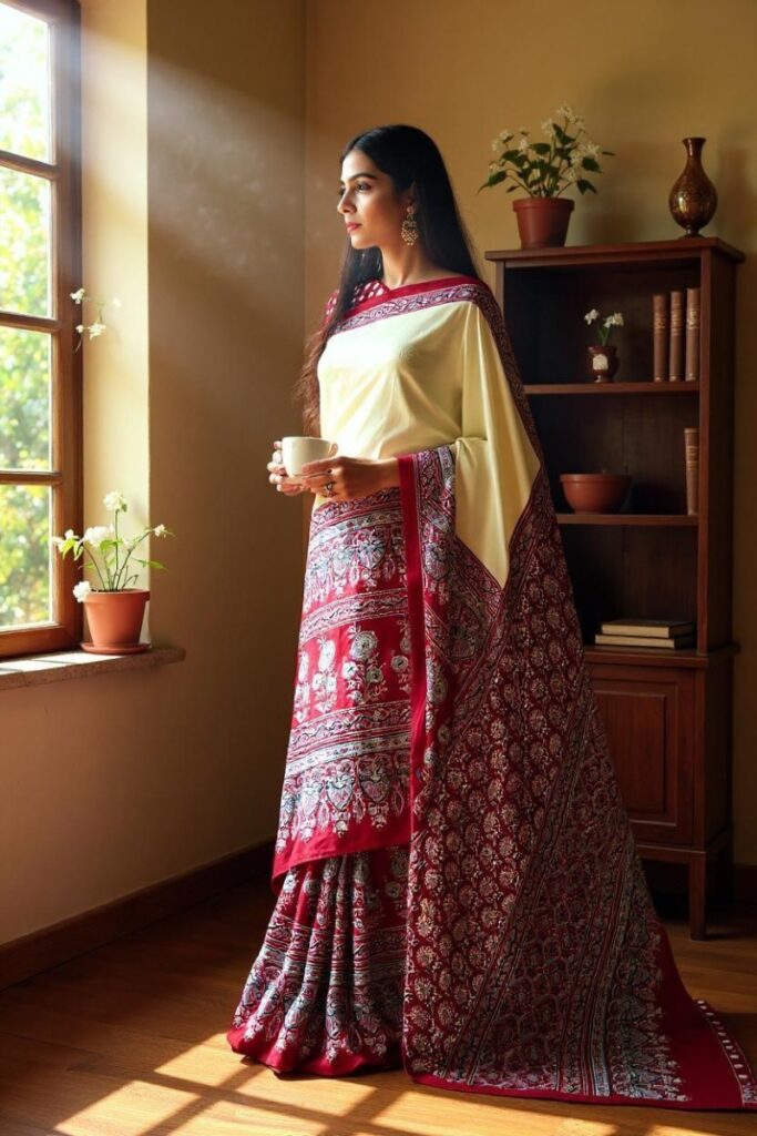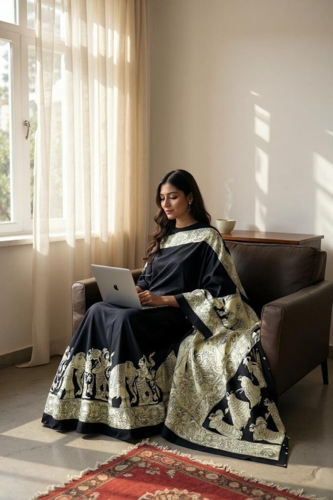 Each saree we create carries the warmth of heritage and the touch of timeless elegance.